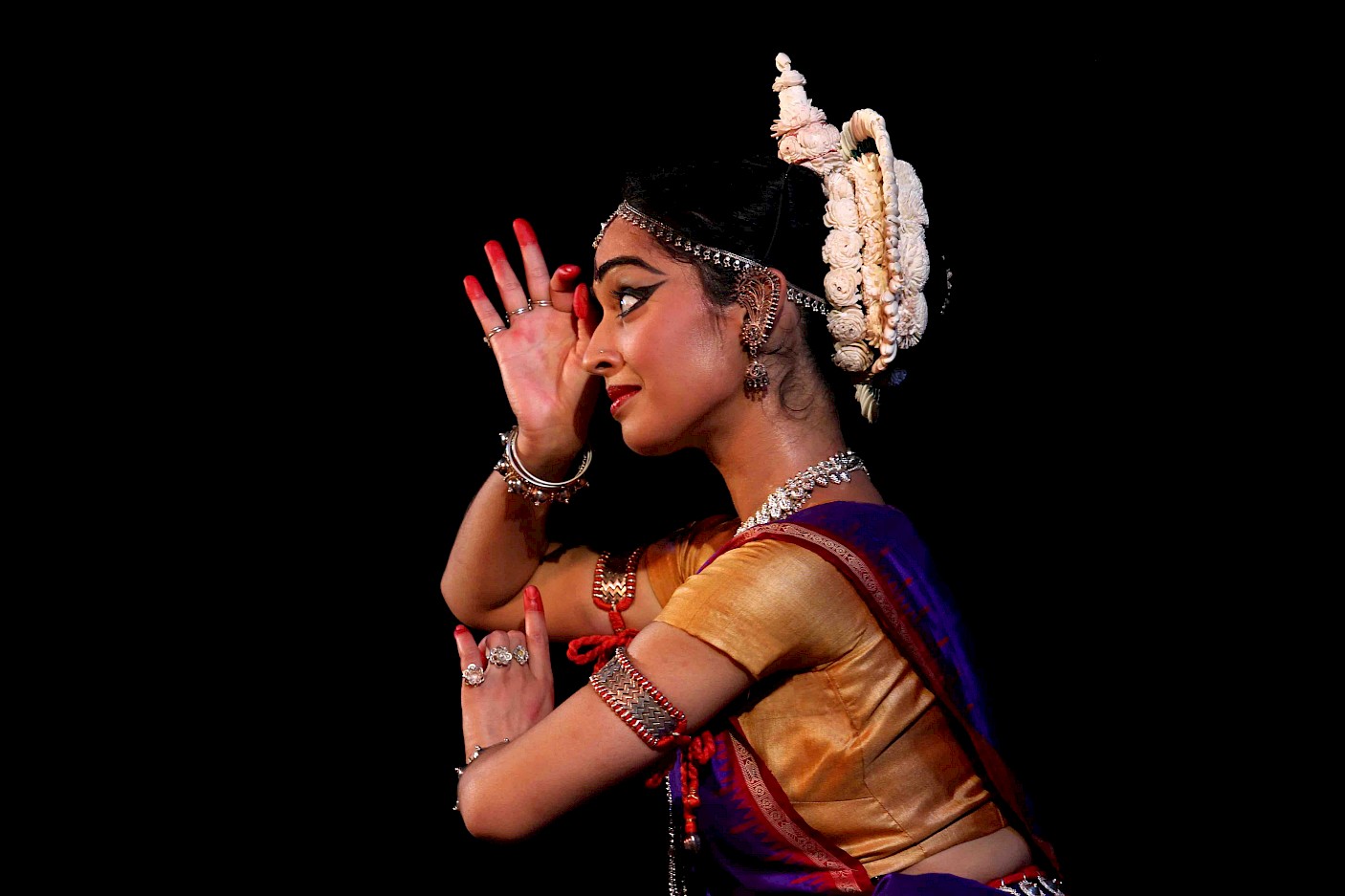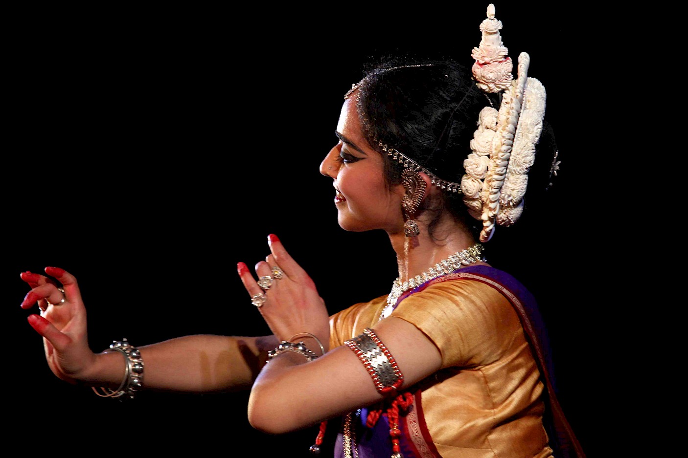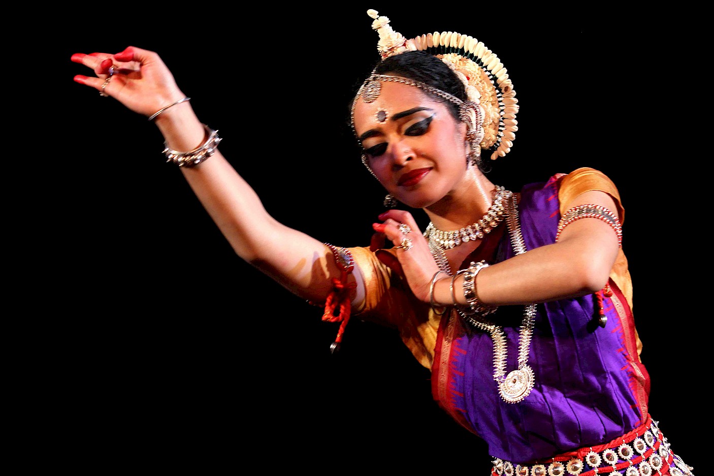 I presented work learnt from my first Odissi teacher Kiran Segal with a mix of compositions by her and her guru, Mayadhara Raut. The repertoire included Mangalacharan (Saraswati Vandana), Batu, Abhinaya (Sangini re raasa rangini re), Pallavi (Raga Mohana), Sabhinaya nritya (Sangini re chanhan).